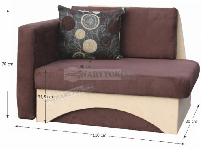 | Rozmery | ŠxVxH: 110x70x80 cm, výška sedu: 34,5 cm, hĺbka sedu: 40 cm, spacia plocha 80x180 cm |