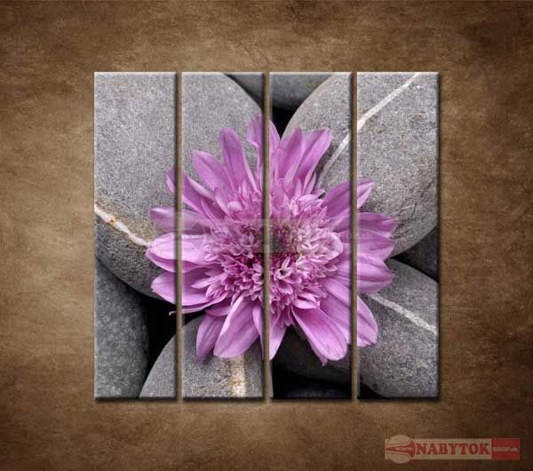 - OBRAZ 4 DIELNY Sivé kamene s kvetom 120X120 CM