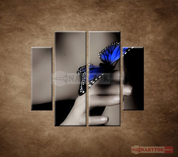OBRAZ 4 DIELNY Modrý motýľ 100X90 CM
