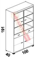 vitrína 4 dverová (2x hliník/sklo, 2x dv.plné) 2 zásuvková