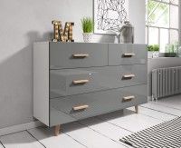 Komoda SWEDEN 4 RENAR, biela / sivý lesk