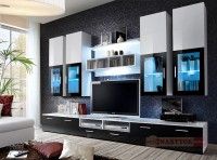 Moderná obývacia stena LYRA 20 WZ LY, biela/biely lesk-čierny lesk/čierne sklo
