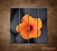 OBRAZ 4 DIELNY Oranžový ibištek na kameni 120X120 CM