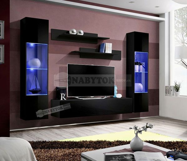 Moderná obývacia stena FLY A 23 ZZ FY A3, čierna / čierny lesk