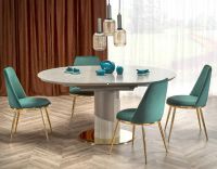 | Materiál | stôl: plát - keramika / podnož - MDF lakovaná / kov - zlatá, stolička: látka zamatová VELVET / kov - zlatá |