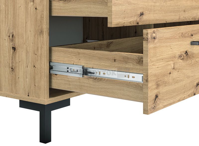 Moderný nábytok NEVIO je elegantný do každej predsiene. Možnosť zakúpiť jednotlivé časti a vyskladať si ich tak ako potrebujete. Nábytok je vyrobený z DTD laminovanej v odtieni dub artisan, doplnené o nožičky kovové čierne a taktiež úchytky čierne.