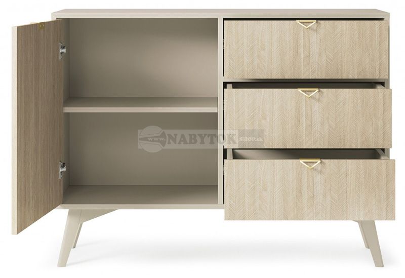 komoda PALOS PA03 106 1D3S - vnútro, farba: béžová piesok / rybia kosť scandi