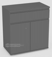 DTD laminovaná / vrchná doska má hrúbku 25 mm s ABS 2 mm, dvierka: ABS 1 mm, ostatné hrany: ABS 0,5 mm