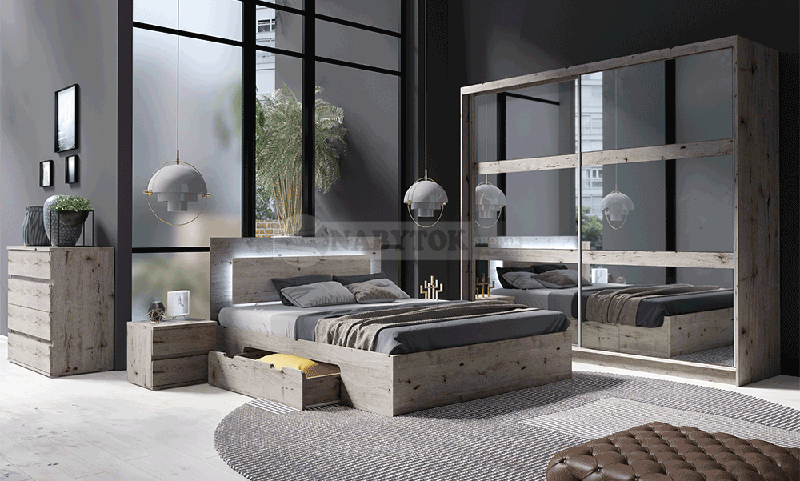 Spálňa TOGOS zostava, sektor: 1x skriňa TOGOS so zrkadlom, 2x nočný stolík TOGOS, 1x posteľ TOGOS 160 s LED podsvietením (bez roštu, matraca a komody TOGOS, možnosť dokúpiť).