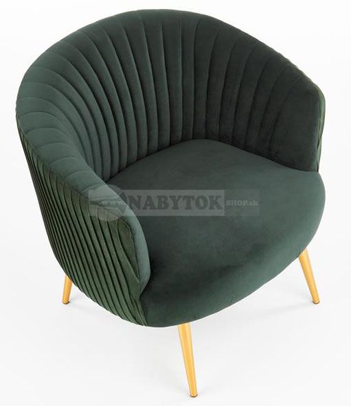 kreslo CROWN, poťah: látka VELVET tmavá zelená/kov: chróm - zlatá