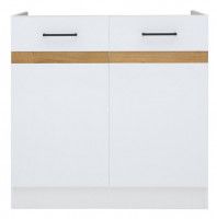 farba korpusu: biela / dvierka: biela lesk / lišta: dub craft zlatý, kuchyňa JUNONA LINE skrinka dolná drezová DK2D/80/82 - ilustračný obrázok