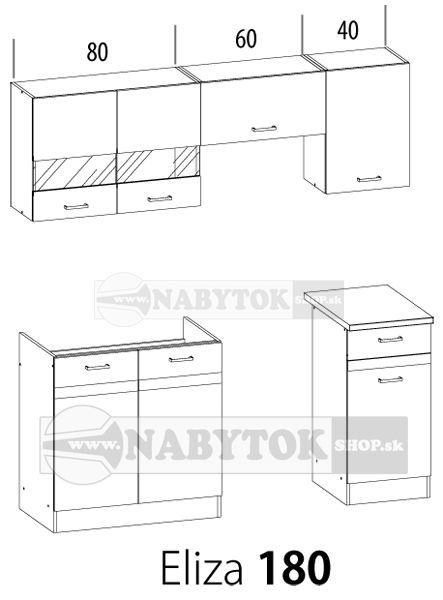Kuchynská linka ELIZA 180 cm s pracovnou doskou (bez drezu, možnosť dokúpiť)