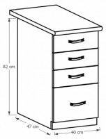 kuchynská linka SICILIA spodná skrinka D40S4 - rozmery, ilustračný obrázok
