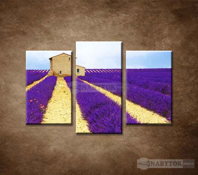 - OBRAZ 3 DIELNY KVITNÚCE LEVANDUĽOVÉ POLE 75X50CM