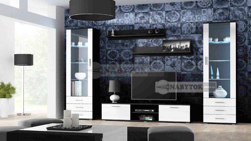 Obývacia stena SOHO 4, sektor: 2x S1 vitrína vysoká, 1x S3 RTV stolík 180, 1x S5 police (bez konferenčného stolíka a LED osvetlenia, možnosť dokúpiť)