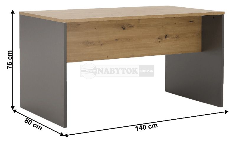 PC stolík RIOMA typ 11 - rozmery, farba: grafit / dub artisan