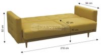 | Rozmery | ŠxVxH: 210x92x94 cm, plocha na spanie: 124x180 cm, výška sedu: 45 cm, hĺbka sedu: 62 cm, výška spodného priestoru od podlahy je 13 cm |