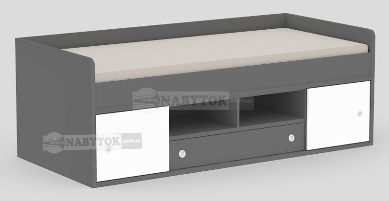 posteľ REA POPPO, farba korpusu: graphite + dvierka posuvné: biela