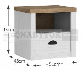 nočný stolík PROVANCE SN - rozmery, farba: sosna Andersen / dub lefkas