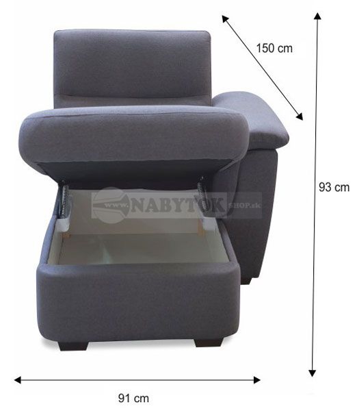 sedacia súprava BORN OTT 1B ZF - rozmery, strana: Ľavá, poťah: látka CABLO 14 sivá