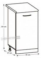 kuchynská linka CYRA NEW skrinka spodná D-30, perokresba - rozmery, ilustračný obrázok