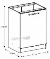 kuchynská linka FABIANA S-60 - rozmery, farba korpus: biela / dvierka: dub sonoma, ilustračný obrázok