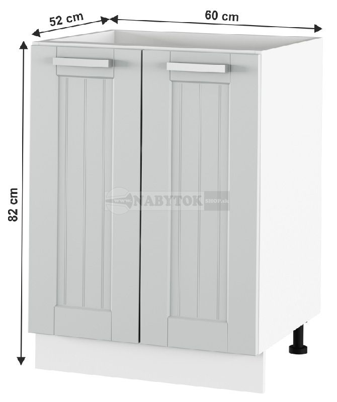 kuchynská linka JULIA typ 56 skrinka spodná 2DV/60 - rozmery, farba: korpus biela / dvierka bledosivá, ilustračný obrázok