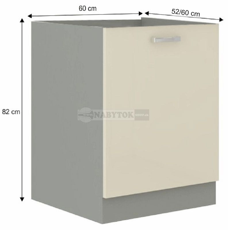 kuchynská linka PRADO skrinka spodná 60 D 1F BB - rozmery, farba korpusu: sivá/dvierka: krémová extra vysoký lesk, ilustračný obrázok