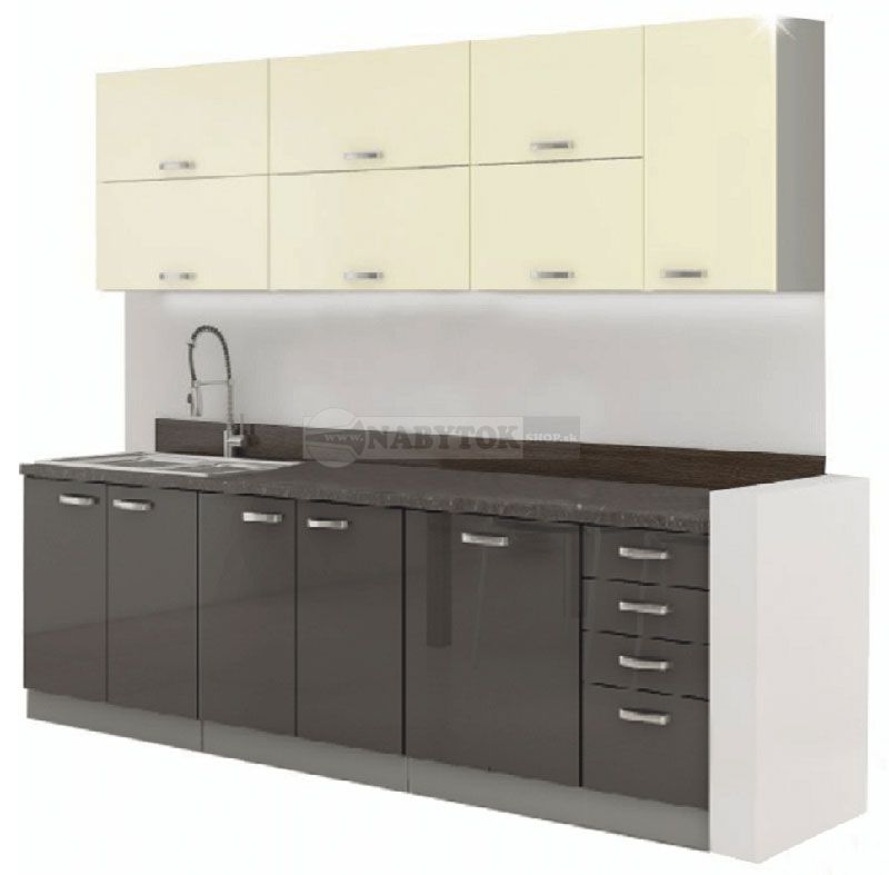 kuchynská linka PRADO zostava, farba korpusu: sivá/dvierka: krémová extra vysoký lesk, ilustračný obrázok