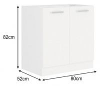 kuchynská linka SPLIT 80 ZL 2F BB skrinka spodná drezová - rozmery, farba korpusu: biela / dvierka: biela, ilustračný obrázok