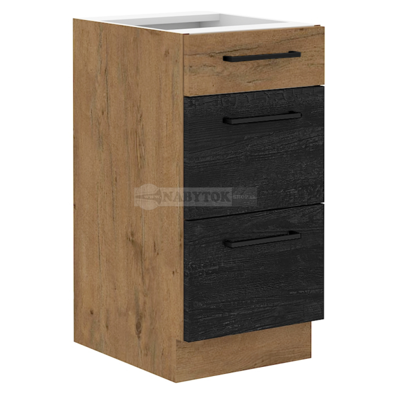 kuchynská linka VEGA 40-D-3S-BB spodná skrinka -rozmery, farba korpusu: dub lancelot / dvierka: sivá matná / dub lancelot
