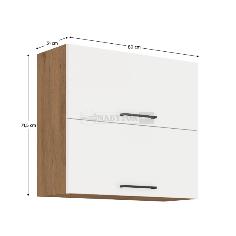 kuchynská linka VEGA 80-GU-72-2F horná skrinka s výklopnými dvierkami - rozmery, farba korpusu: dub lancelot / dvierka: biela extra vysoký lesk