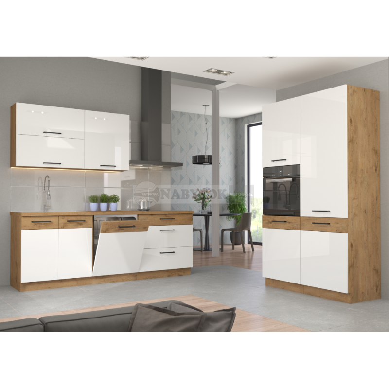 kuchynská linka VEGA ZM 570x446 dvierka na umývačku, farba: biela extra vysoký lesk / dub lancelot