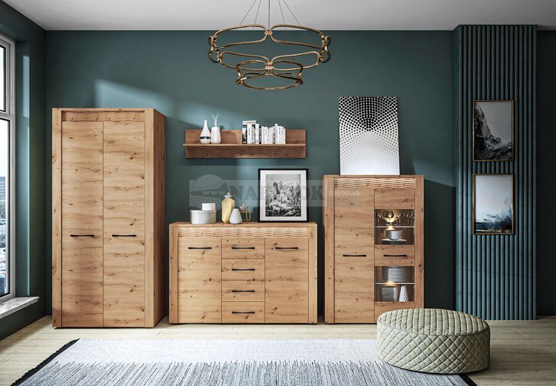 Sektorový nábytok ARTIS zostava 1, 1x 03 vitrína 2D, 1x 07 komoda 2D4, 1x 06 komoda 4S1D, 1x 12 polica (bez LED osvetlenia, možnosť dokúpiť)