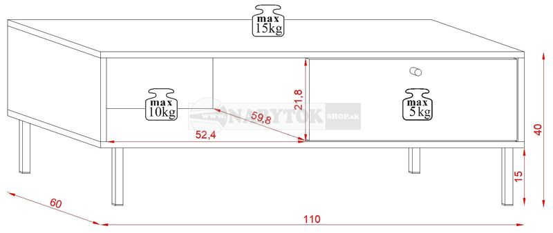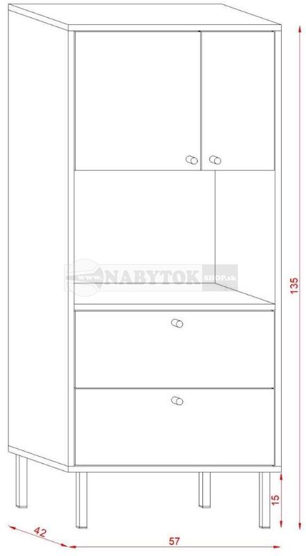 | Prevedenie | Komoda 2S2D: 2x zásuvka / 2x dvierka / kov - nohy / kov - úchytky, Komoda 3S2D: 3x zásuvka / 2x dvierka / kov - nohy / kov - úchytky, Komoda 4D: 4x dvierka / police / kov - nohy / kov - úchytky, RTV stolík 2D1S: 2x dvierka / 1x zásuvka / kov - nohy / kov - úchytky |