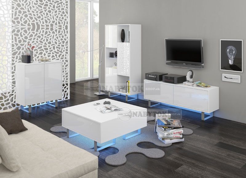 Sektorový nábytok KING zostava 1, sektor: 1x KING 1 RTV stolík, 1x KING 3 komoda, 1x KING 6 regál, (bez LED osvetlenia a KING 8 konferenčného stolíka, možnosť dokúpiť)