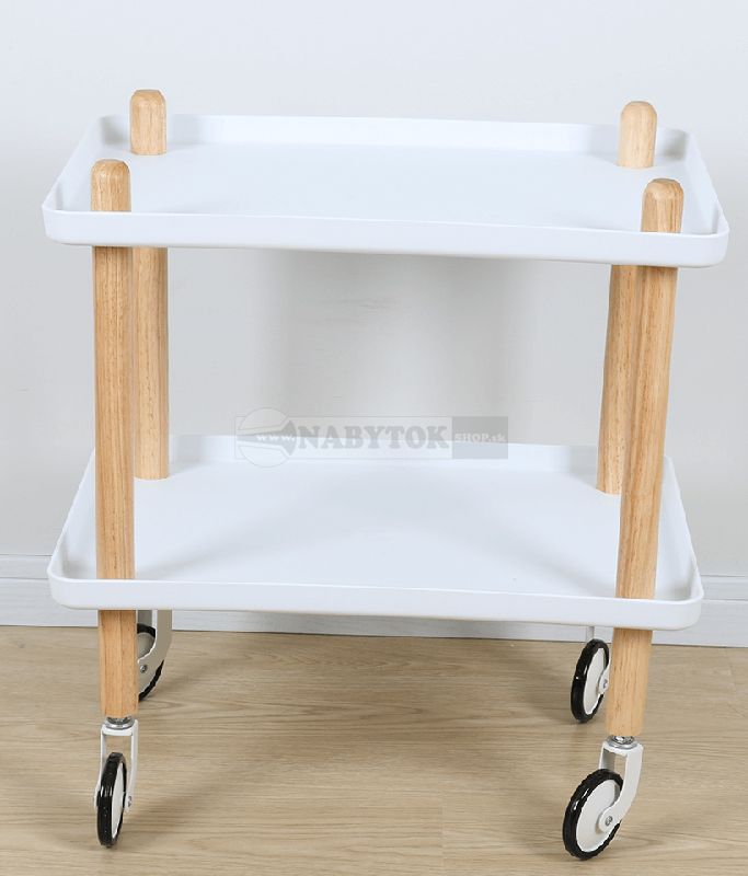 Servírovací stolík PONTO, biela/prírodná - na kolieskach s dvoma policami