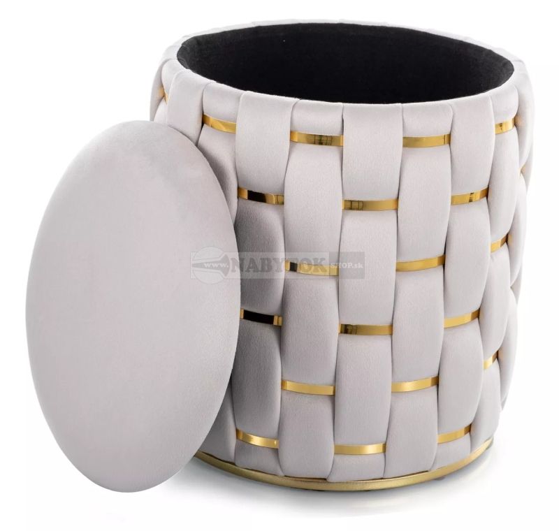 Taburetka TIARA VELVET je elegantná okrúhla taburetka s úložným priestorom, ktorá je navrhnutá v modernom glamour štýle. Vďaka svojmu dizajnu a funkčnosti je vhodná ako dekoratívny prvok do obývačky, spálne, predsiene či detskej izby.
