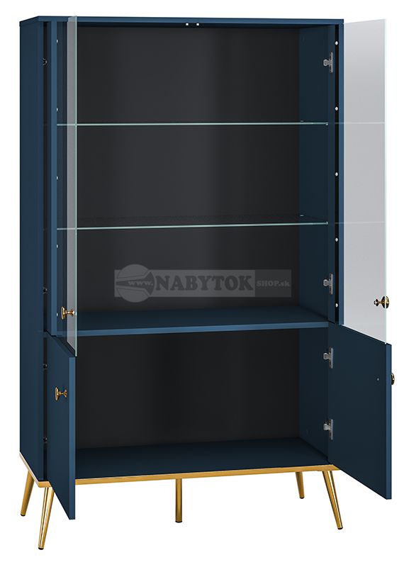 vitrína MARIANE 02 + vnútro, farba: farba: tmavomodrá / nohy + úchytky: zlaté