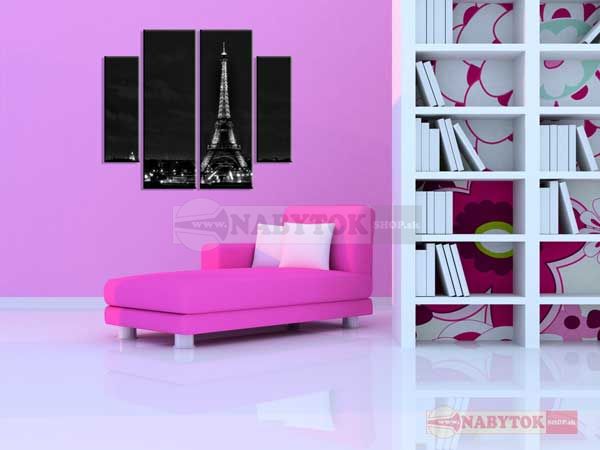 - OBRAZ 4 DIELNY ČIERNOBIELA EIFELOVKA 100X90 CM