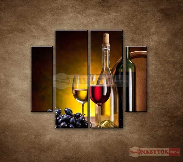 OBRAZ 4 DIELNY VÍNO SO SUDOM 100X90 CM