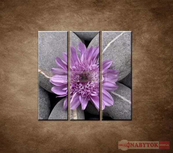 - OBRAZ 3 DIELNY SIVÉ KAMENE S KVETOM 90X90 CM