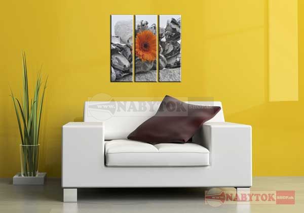 - OBRAZ 3 DIELNY ORANŽOVÁ GERBERA A KAMENE 90X90 CM