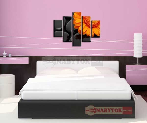 OBRAZ 5 DIELNY Oranžová gerbera na kameňoch 100X80 CM