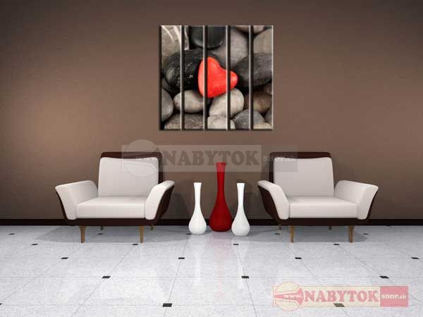 - OBRAZ 5 DIELNY Červené srdce na kameňoch 100X100 CM