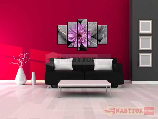 - OBRAZ 5 DIELNY Sivé kamene s kvetom 150X100 CM