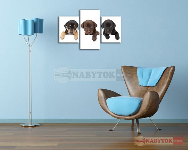 OBRAZ 3 DIELNY Tri šteniatka 90X60 CM