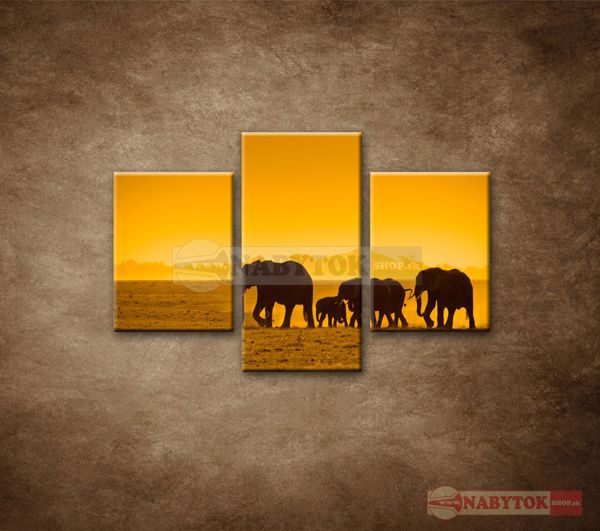 - OBRAZ 3 DIELNY Slonia rodinka 90X60 CM