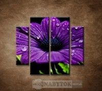 OBRAZ 4 DIELNY FIALOVÝ KVET 100X90 CM