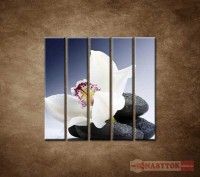 OBRAZ 5 DIELNY Biela orchidea na čiernom kameni 100X100 CM